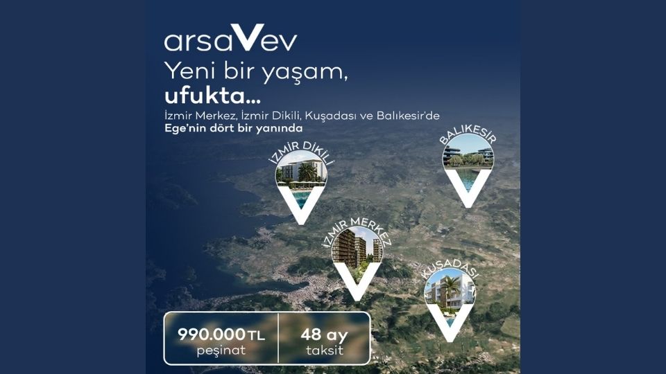 Gayrimenkul sektöründe geliştirdiği yenilikçi modellerle dikkat çeken arsaVev, Ege Bölgesi’nin dört bir yanında hayata geçirdiği projeleri kapsayan yeni kampanyasını duyurdu. “Yeni bir yaşam, ufukta…” sloganıyla sunulan kampanya, İzmir Merkez, İzmir Dikili, Kuşadası ve Balıkesir’de konumlanan projelerde geçerli olacak. Ege’nin yükselen lokasyonlarında hem yaşam hem de yatırım değeri yüksek projeleriyle öne…